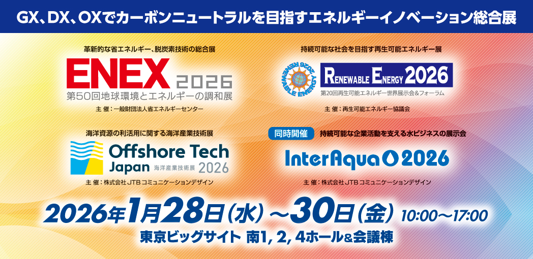 我们将参加于2026年1月28日(周三)至30日(周五)在东京国际展览中心(Tokyo Big Sight)举办的“ENEX 2026:第50届能源与环境展览会”。